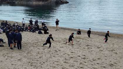 自然教室その19 砂浜レクで楽しんでいます