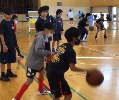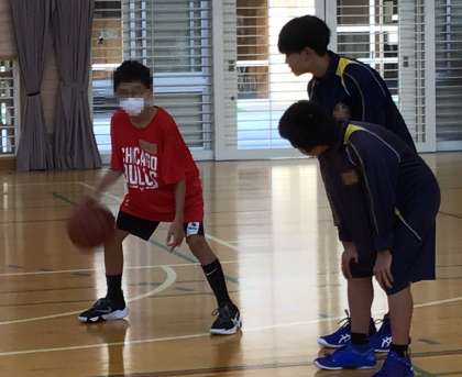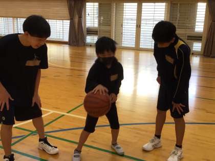 11月6日(土)午前に、今年度初めてとなる「部活フェス」が行われました。今回は、男子バスケットボール部で行われ、6名の小学生の皆さんが参加してくれました。経験者と未経験者のいずれの子もいましたが、バスケットボール部の生徒の皆さんは、一人一人の力量に応じて温かく見守りながら一緒にバスケットボールを楽しみました。