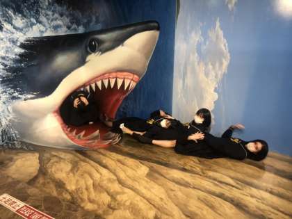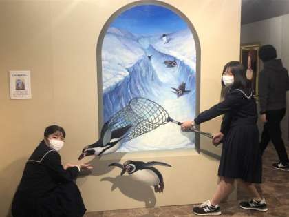 2組は熱海のトリックアート迷宮館で、トリックアートに驚いたり、写真を撮ったりして楽しみました。