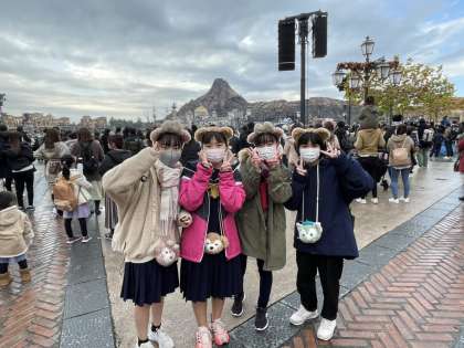 子どもたちはディズニーシーを楽しんでいます。ディズニーシーはたくさんの人で賑わっています。
