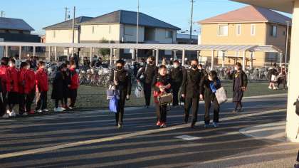 7日(金)朝、生徒会執行部の呼びかけで執行部とボランティアの生徒があいさつ運動を行いました。冬休み明け最初の登校で大変寒い中でしたが、声をかける生徒の皆さんの元気な声に、登校してきた生徒も顔を上げて明るく笑顔であいさつをしていました。新年のスタートとして、とても清々しい気持ちになる光景となりました。なお、本日は、浄水小学校でも民生委員の皆さんが登校する児童にあいさつの声掛けをして下さる等、地域としてあいさつ運動を展開していました。今後も地域であいさつの輪が広がっていくとよいと思います。