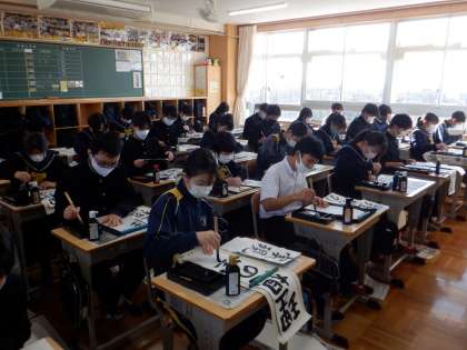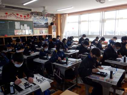 正月の伝統行事や日本古来の文化に触れる機会が少なくなっている中、書き初め大会は年明け最初の登校日に、心を整えて「書」の伝統に触れる貴重な機会になっています。