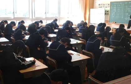 8日(火)から10日(木)までの3日間に渡り、1,2年生の学年末テストが行われます。テスト前の時間には、生徒の皆さんは友達同士で問題を出し合ったり、内容を確認し合ったりして、テストに向けて真剣に取り組もうという雰囲気がクラス全体で感じられます。テストが始まると、どの生徒も最後まで集中してテストに取り組んでいました。これまでの学習の成果を十分に発揮できるといいですね。