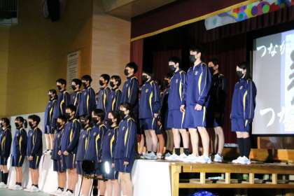 3年生を送る会の終盤では、部活動ごとにお世話になった先輩への感謝の気持ちを届けました。また、3年間の思い出を詰め込んだスライドやお世話になった先生方からのビデオレターを観て、涙ぐむ3年生の子どもたちもいました。