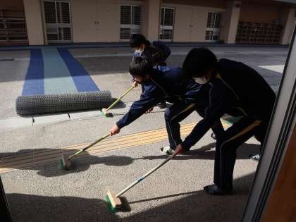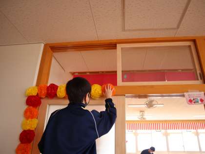 卒業式の会場準備の他,教室の飾り付け,校内の清掃など,3年生の先輩方のために一生懸命に取り組んでいました。卒業式に出席できない分,これまでの感謝の気持ちが伝わるよう,心を込めて活動していました。