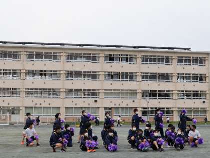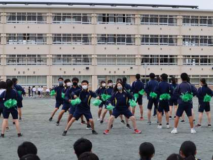 本日,3年生は,今週行われる体育祭の「水龍アピール」のリハーサルを行いました。