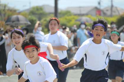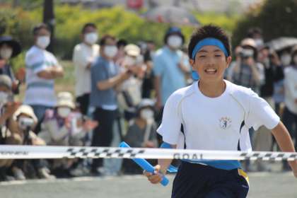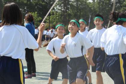 本日、天候にも恵まれ、1年生にとって中学校生活初めての体育祭が行われました。学級で競い合う8の字跳びと浄水リレーでは、これまでの練習の成果をどの学級も発揮し、全力で取り組む姿がありました。生徒の一生懸命な姿や笑顔があふれる姿に感動を与えてもらいました。