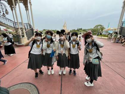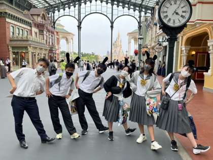 ディズニーランドでの楽しい一日も終わりの時間に近付いています。最後までディズニーランドを楽しんでいます。