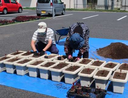 3日(金)午後の好天のもと、地域の方がお見えになってプランターにマリーゴールドやケイトウの苗を植えていました。この日できあがったプランターは区民会館や放課後児童クラブに設置するそうで、浄水地区の様々な場所を明るくしてくださっています。それぞれの場所で是非ご覧ください。