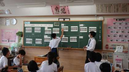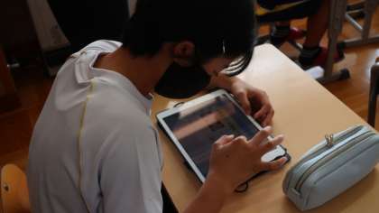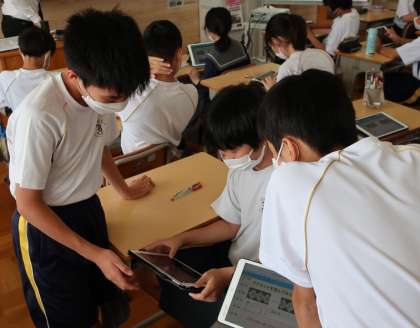 10日(金)に行われた1年生の数学の授業の様子です。先生から出された課題に対して、生徒一人一人がタブレット上で自分の考えを表現し、互いに説明し合い、時にはまとまっていない意見に対してみんなで考えを出し合ってまとめ上げるなど、生徒は多様な考えがあることや仲間と作り上げることのよさを実感していました。文科省や市教委が掲げているICTを活用した協働的な学びを今後も実践していきます。