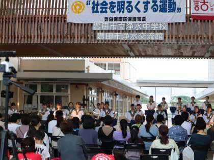 本日,浄水交流館で行われた「第72回 社会を明るくする運動」では,作文発表会が行われました。社会を明るくする運動作文コンテストや,豊田市中学生の主張発表大会の受賞生徒が,コミュニティーホールで発表しました。また,夜のコンサートでは,吹奏楽部の演奏が行われました。