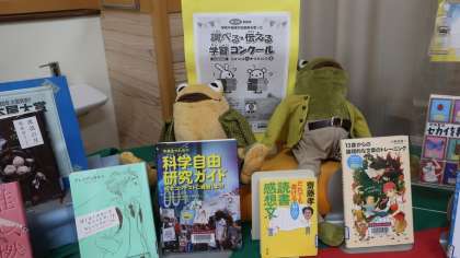 夏休みに向けて、図書委員会の皆さんや図書館司書さんの協力で図書室のお勧めコーナーをリニューアルしました。夏休みといえば、読書感想文。今年度の課題図書が紹介されています。また、社会科や理科の自由研究等に取り組んでみたい人に参考になる図書も紹介されています。国語の教科書に取り上げられた作品の紹介もされていますので、じっくりと読むのもよいです。読書や様々な応募作品に取り組める生徒が増えるとよいと思います。