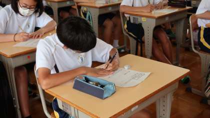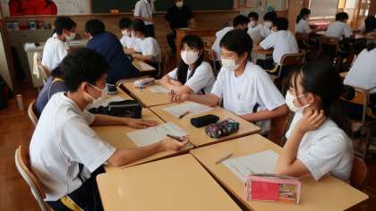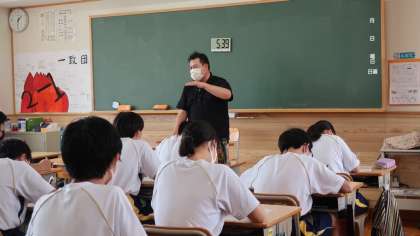 27日(月)午後に、総合的な学習の時間の一環として、2年1組が市内にあるフレンチレストラン「レクラドリール」店主の近藤さんをお招きして、調理師として、またレストランの経営者としての思いや取組について、様々お聞きしました。事前に用意した質問や近藤さんのお話を伺った上でさらに聞いてみたいと思った質問について、近藤さんは大変丁寧に答えてくださり、生徒の皆さんも頷きながら聞き入っていました。近藤さんの熱い思いを今後の活動に生かせるといいですね。