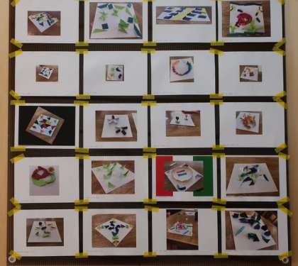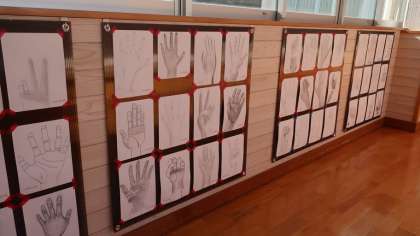 6月29日(水)から7月29日(金)まで、今年度2回目のアートスペース(美術の授業で制作した作品を展示する場所・2階会議室前)の展示を行っています。現在、3年・絵手紙「新しい春のメッセージを描こう」、2年・立体構成「すきまをあそぼう」、1年・デッサン「12才の手」が展示されています。