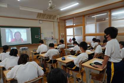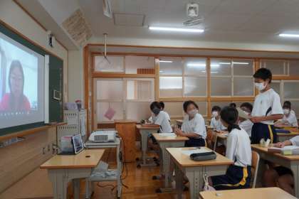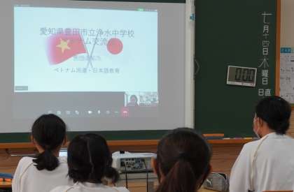 14日(木)に1年5組が総合的な学習の時間の一環で、ベトナム在住の方とオンラインで結び、ベトナムの環境問題についてお話を伺いました。1年5組は