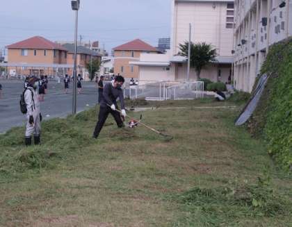8月20日(土)早朝より、PTCA主催の校内美化活動として、草刈りを行いました。開校以来初の試みということで、学校としては大変ありがたい活動をしていただきました。今回、学校メールでの案内でしたが、生徒8名、保護者20名、地域の方10名の合計38名の方が参加していただきました。曇り空で活動には最適な天気でしたが、暑い中で皆さん熱心に活動に取り組んでくださいました。お陰様で見違えるようにきれいになり、9月から気持ちよくスタートできそうです。ご協力いただいた皆さん、どうもありがとうございました。