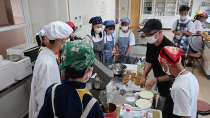 2年4組はコラボしているお店の方のご指導で計画しているスイーツの試作に取り組みました。また、2年3組は区長さんや交流館の職員の皆さんにインタビューをして地域の魅力を調べていました。いずれもどのように仕上がっていくのか楽しみです。