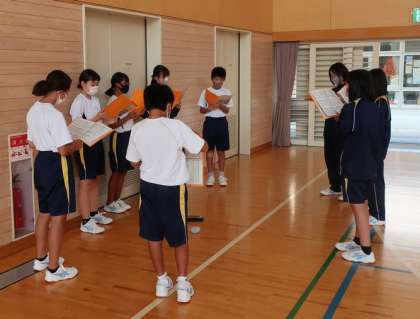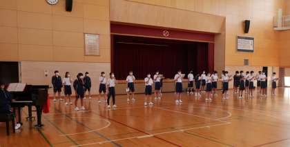 10月28日に3年ぶりの合唱コンクールを予定しており、9月12日(月)より、各学級の練習が始まりました。9月13日(火)午後は、体育館や教室、廊下等で、全体やパートごとの練習を行ったり、個人用の楽譜綴りの作成や合唱曲のイメージ画の選出を行ったりと各学級のペースで行われていました。校内で歌声が響くのは久しぶりのことで、活気が感じられました。感染対策をしながらも合唱づくりを通して、生徒の成長につなげていきたいと思います。