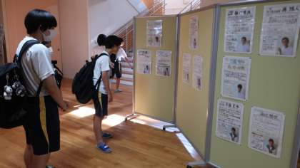 9月20日(火)の後期生徒会役員選挙投票に向けて、13日(火)から選挙活動が展開されていました。立候補者は登校時の呼びかけや選挙ポスターによるPRに取り組んできました。各候補者が浄水中の現状を踏まえて、様々なアイデアを出してくれており、頼もしく感じられます。自分の思いを精一杯発揮してほしいですし、選ぶ側も一人一人の考えをしっかりと理解してほしいと思います。