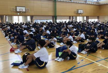 2年生は26日から行われる自然教室に向けて、1時間目から体育館で事前指導を行っています。先生の指示に従って落ち着いて行動ができており、本番も安心できそうな雰囲気です。最終確認となるので、みんなでしっかりと協力して取り組んでいきます。