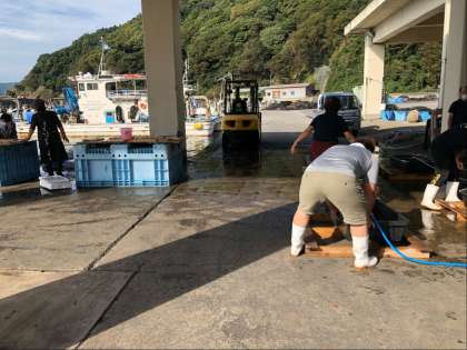 作る前に地元の方から説明してもらいました。準備も地元の方が大勢協力してくださいました。どんな仕上がりか、おみやげをお楽しみにしてください。
