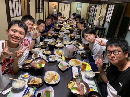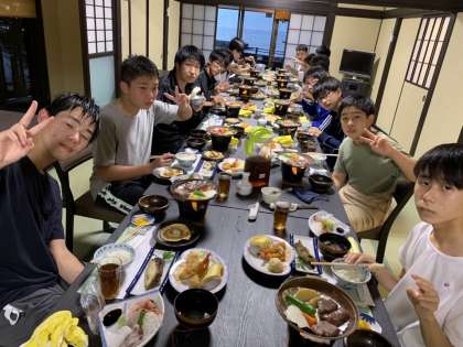 夕食はそれぞれの民宿にいただきます。1組の様子です。