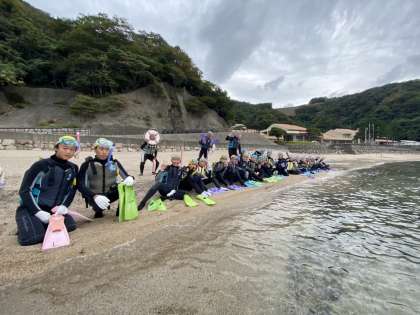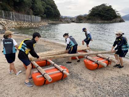 自然の家での最初の活動が始まりました。スノーケリングやカヌー、筏づくりは苦戦しています。