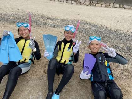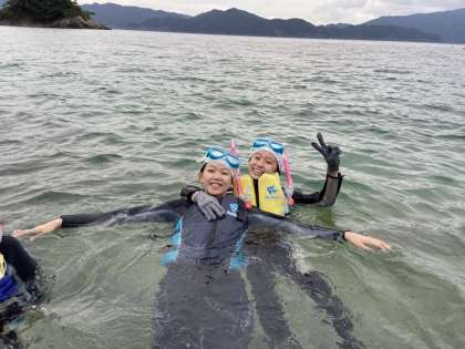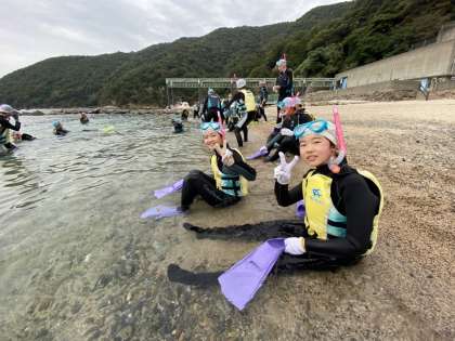 浜辺から少し離れたところまで移動して海中遊泳を楽しんでいました。