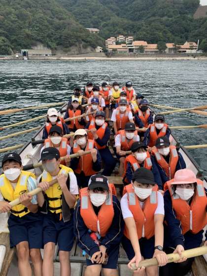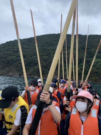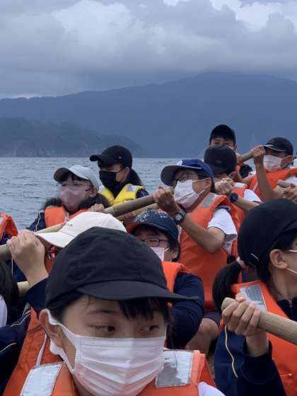 乗り場から出航して、湾内とはいえ結構沖まで漕ぎ出でていました。心を一つにして漕がなければ帰れないという思いから、みんな最後まで諦めずに必死でした。