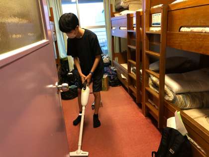 3日目がスタートしました。6時に起床後、6時20分から清掃活動です。しっかりと自分の分担作業に取り組んでいますが、中には眠そうにぼんやりしながら作業している生徒もいます。