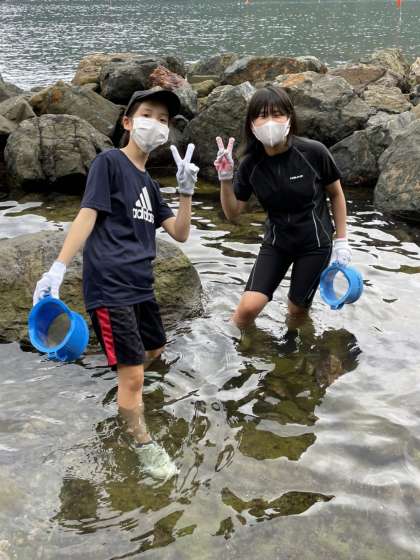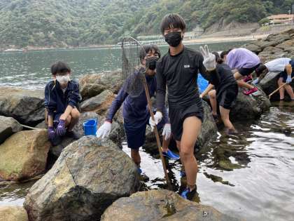 磯観察の様子です。生き物を探して夢中になっています。