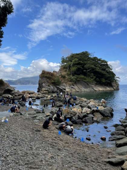 職員の皆さんに温かく見送られながら施設を後にしました。施設からバスの駐車場まで急勾配の階段を登る必要があり、大きな荷物を持ってみんなで必死に登り切りました。磯観察の時のきれいな写真が届きましたので掲載します。