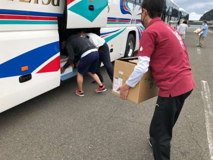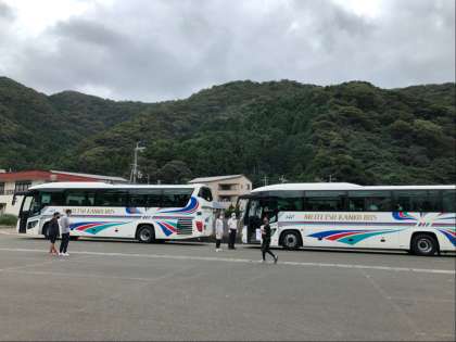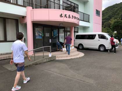 世久見地区に寄り、みんながつくった干物を受け取りました。午後2時前に世久見地区を出発し学校に向かい始めました。