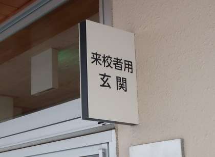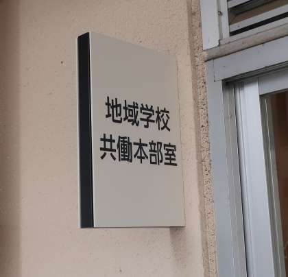 3日(月)午後、業者の方に中学校の来客用玄関と地域学校共働本部室入口に表示を付けてもらいました。これまで、来校される方から交流館や本部室、学校の入口が分かりづらいという声をいただいておりましたので、少しでもわかりやすくなればという思いから設置することになりました。ご来校の際にお役に立てれば幸いです。