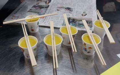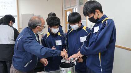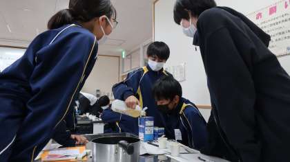 22日(木)午後、2年5組とまごころ学級の生徒が菜の花農園の方に廃油を使ったろうそくづくりを教えていただく機会がありました。2年5組が総合的な学習の時間でオリジナルカレー作りに取り組んだ際に、菜の花農園さんから材料を提供していただいたことが縁で今回の活動が実現しました。廃棄されてしまうものを活用してクリスマスにぴったりなカラフルなろうそくができあがり、生徒も楽しそうに作っていました。