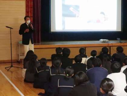 23日(月)午後に、2年生全員が薬物乱用防止教室を行いました。講師に愛知県薬剤師協会の方をお招きして、プレゼン資料や動画等を使いながら、分かりやすく説明していただきました。薬物乱用のきっかけは身近なところにあると説明を受けて、生徒の皆さんも真剣な眼差しで聞いていました。今回学んだことを生かして、薬物乱用とは関わりのない生活を送ってほしいと思います。