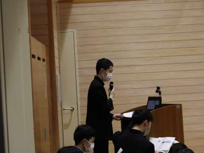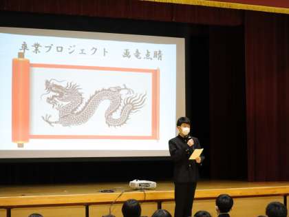 本日,3年生は,企画委員会による「卒業プロジェクト 画竜点睛」について説明をする学年集会を行いました。