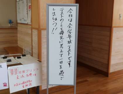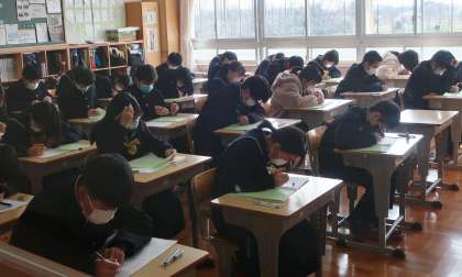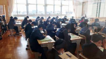 教室をのぞいてみると、どこも一生懸命に問題を解く生徒の姿ばかりで、外気の冷たさに反してとても熱気を感じました。これまでの取組の成果が発揮できるとよいと思います。1,2年生の皆さんは引き続き学年末テストもありますので、気を抜かずに頑張ってほしいですね。