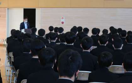 2月20日(月)朝、3年生が1回目の卒業式練習に臨みました。卒業式に向けての準備や練習についても、生徒の実行委員が中心となって進めていくことになっており、スタートに当たって、実行委員の代表生徒が卒業式に向けて気持ちを高める話をしていました。その後、3年部の先生からも話があり、注目している生徒の皆さんの表情は真剣そのものでした。自分たちで作り上げる卒業式で、良い締めくくりができるとよいですね。