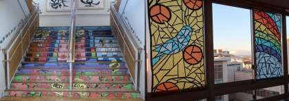 1日(水)に行われた「3年生を送る会」に向けて、校内の装飾も行われました。卒業まで3年生を楽しませてくれますが、1,2年生のスタッフの皆さんが頑張って制作した作品を紹介します。