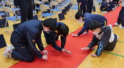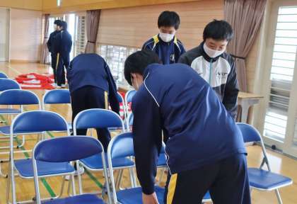 6日(月)午後、2年生の生徒と先生方で明日行われる卒業式の準備を行いました。体育館の会場づくりや校内の清掃、3年生の教室の装飾等、2年生の生徒の皆さんが心を込めて取り組み、3年生の最後にふさわしい舞台の準備が完了しました。あとは主役である3年生の入場を待つのみです。良い節目になることを願っています。
