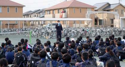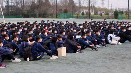 9日(木)午後、自転車通学者が通学の時に飛び出し、地域の方にご心配をおかけするという事案を受けて、帰りの会後に全体の指導を行いました。担当の先生から交通規則に関する説明や地域の皆様が中学生の登下校に配慮してくださっていることを伝え、生徒の安全への意識を促しました。また、担当の先生から、法的に「飛び出し」をしてしまうと想定されている最高年齢について問われると、生徒は「16歳?18歳?」と周囲と相談していましたが、正解である「5歳」と聞いて大変驚くとともに、認識の甘さを実感しているようでした。最後に「自分は大丈夫」「自分さえよければ」という考えは危険で、自分自身や地域の皆様の安心安全のためにも気を付けるように、と伝えて会を閉じました。