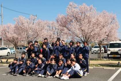 2年生の皆さんも、学級ごとに体育館で球技を行ったり、満開の桜や菜の花をバックに記念撮影を行ったりして、クラスの仲間との記念作りをしていました。天気も良く、桜や菜の花が美しく咲き誇っていましたので良い日になりました。