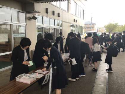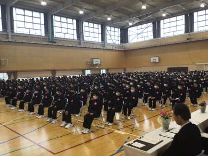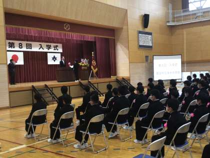 4月7日に第8回入学式が行われました。大勢の保護者に見守られて、243名の新入生が本校の仲間入りをしました。新入生の真剣な眼差しと背筋をピンと伸ばして式に臨む姿から、「中学校で頑張りたい」という意欲を感じました。この日の思いを大切に、これから3年間の学校生活を精一杯取り組んでほしいと思います。
