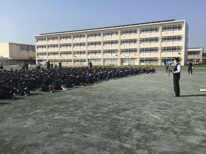 「調理室から出火」という想定で避難訓練を行いました。真剣に避難し、担当の先生の目を見て話を聞いている生徒が多かったです。あってはならないことですが、万が一の時には、本日の訓練のことを思い出し、落ち着いて行動してほしいです。