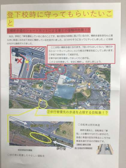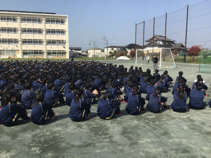 登校時に自転車の危ない場面があったと、地域の方から御心配の声をいただきました。早速、交通安全担当より自転車の乗り方について2、3年の生徒たちに話をしました。登校時は、自転車、自動車、歩行者が一緒になることが多く、大変危険です。自分にも周りの人にも安全でやさしい自転車運転をしていきましょう。(1年生は自転車登校開始に合わせて行います。)