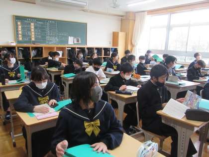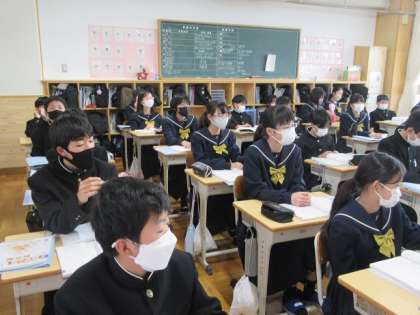 14日(金),1年生は中学校生活初めての教科の授業を行い,授業の受け方を知りました。皆,真剣に先生の話を聞いていました。