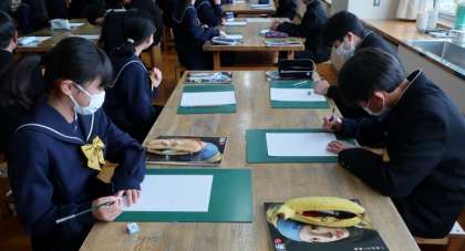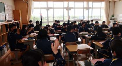 24(月)、1年生の美術の授業では、絵画の基本を学んでいました。今日は鉛筆の種類と特徴を知り、これからの作品制作に生かします。2年生の数学の授業では、文字式の学習で、代表の生徒がクラスの仲間に頑張って説明していました。3年生の国語の授業では、机を話し合いの隊形にして、テーマについて意見を交わしていました。