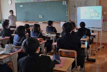 26日(水)、1年生の英語の授業では、動画を活用して難しい発音を繰り返し確認、練習をしていました。2年生の国語の授業では、各自が行った文章の読み取りについて、クラス内で様々な仲間と意見交換して考えを深めていました。3年生の体育の授業では、体育祭種目の練習を中心に行い、タブレットで動きを確認する等、上手に活用して効率よく取り組んでいました。