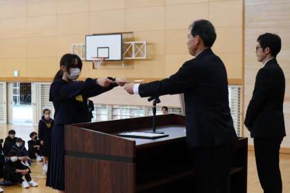 本日1年生は,前期の認証式を行い,級長・書記・議員の生徒が認証状を受け取りました。